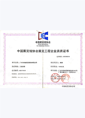 中国展览馆协会授予中国展览馆协会展览工程企业资质证书