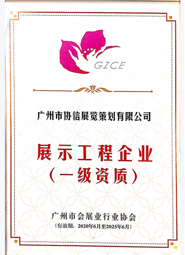 广州市会展业行业协会授予展示工程企业一级资质证书